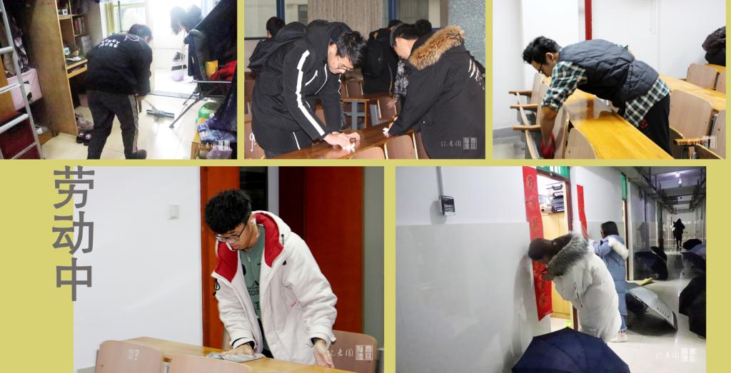 习近平总书记在全国教育大会上强调“培养德智体美劳全面发展的社会主义建设者和接班人”, 2月21日,我院开展了首次劳动日活动。本次劳动日活动主题为“喜迎新学期,园林焕新颜”,活动共分为两个部分。第一部分由18级全体同学参与,对本寝室及所属走廊路段进行清理打扫。第二部分将在园林北楼228会议室、225文化展厅、113会议室进行,由同学自愿报名参加。