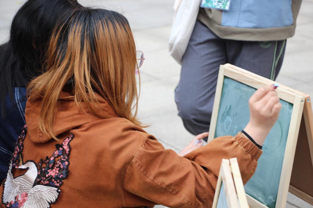 活动伊始,艺术团的同学合唱《我和我的祖国》与《狮子山下》两首歌曲,将现场气氛逐渐活跃,为游戏的互动环节做足了铺垫。四轮游戏设置的核心主要从童年、信任、默契、和释放这四个关键词展开。“我的童年分你一半”,要求参与者依次完成跳房子和踢毽子的相关任务,将师生们童年记忆中的游戏再度重现,展现出了老师们最欢快的一面。而在闭眼指挥游戏中,挑战者要在闭眼状态下借助同伴的指引来完成行走任务,搭档之间互相信任,默契十足。“一起做表情”游戏,让老师们在挑战过程中,释放天性,表现出相应的表情来赢得心仪的表情玩偶。有趣的游戏和精美的小奖品,激发了老师和同学们的参与热情。不同于课堂上的严肃状态,一个个游戏将师生之间的距离迅速拉近,师生同乐,共同度过了一个轻松惬意的下午。