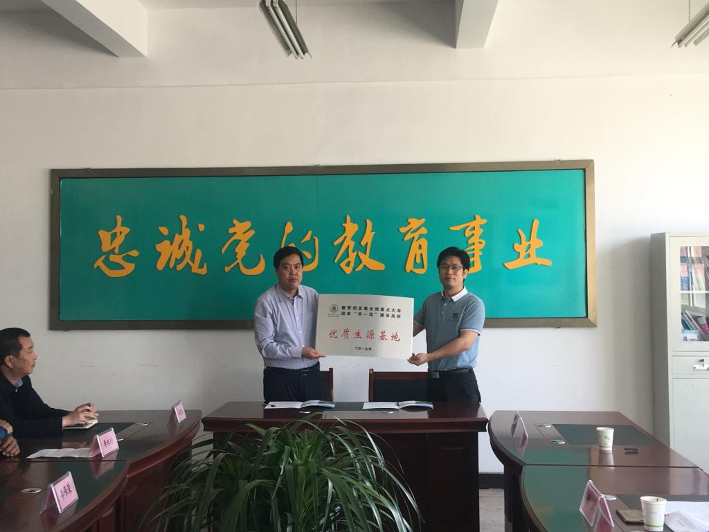 会后,蔡江与李保荣校长进行了我校“优质生源基地”签约和授牌。