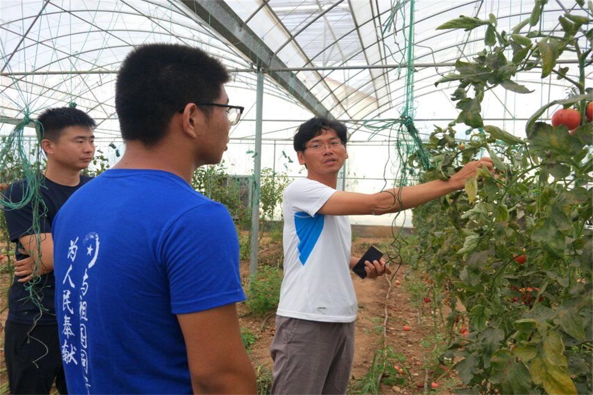 7月30日下午,ok138cn太阳集团ok138cn太阳集团529赴山东省寿光市暑期社会实践团团员们来到寿光南澳绿亨农业有限公司,与公司育种总监惠岸交流蔬菜育种的相关经验和问题。