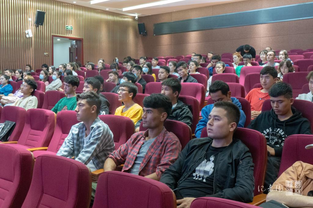 尼加提老师接着与同学们分享了自己祖辈的故事。50年代时,尼加提老师的外祖父母作为新疆军区派往武汉的教师团队中的成员来到了汉口,教授新疆地区的音乐、文化。“当时我的姥姥、姥爷去往武汉的时候只能坐飞机,而现在火车、高铁等运输方式都逐渐完善起来,新疆与内地的距离越来越近了。”他特别指出,少数民族同学们要走出舒适圈,努力和全国各地的同学们成为朋友 ,大家要作为友好的使者,促进新疆和内地同胞的交流。对于新疆地区仍然存在的偏见问题,“现在任何一种情感都是用心来交流,也许不能改变所有人的印象,但是可以改变身边朋友们的看法,要相信你的能量是巨大的。作为千禧年的一代,你们应当要插上新时代的翅膀。”是他的倡议。