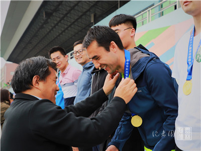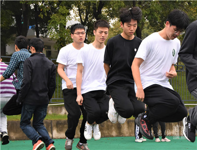 【核心提示】11月1日上午9:00,男子组师生融合大河之舞比赛于第二运动场北侧举行。我院教授王永健等6名老师和王一磊等6名同学参加了此次比赛,校党委书记高翅亲临现场指导。最终,他们以2分钟68个的优异成绩斩获第一名。