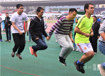 11月1日上午9:00,男子组师生融合大河之舞比赛于第二运动场北侧举行。我院王永健、秦仁强、杜克兵、罗杰、阿卜力克木·吾卜力和何寿鹏6名老师,王一磊、唐逸飞、董新宇、吴涵、贺世伟和陆闵6名同学参加了此次比赛。