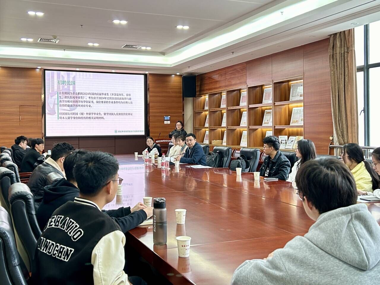 随后进行了座谈交流,吴梅副处长和彭检贵副处长逐一详细解答了与会老师和同学们关心较多的招聘专业限制、薪资待遇、未来发展前景以及就业实习申请等相关问题,宣讲会现场氛围热烈。