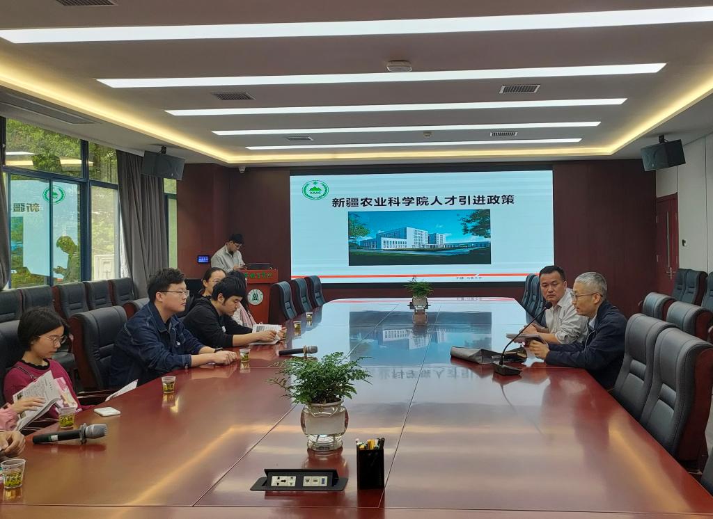 2024年4月11日上午,新疆农业科学院人才引进宣讲会在ok138cn太阳集团529北楼219会议室举行(以下简称新疆农科院)。新疆农科院经济作物研究所所长孔庆平、园艺作物研究所副所长马凯、ok138cn太阳集团529辅导员肖晗与我院博士研究生共同参与。