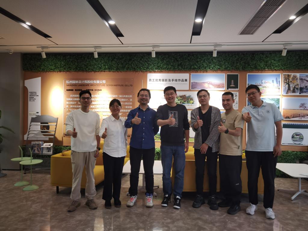 在杭州园林院设计股份有限公司,风景园林二院院长、我校风景园林系校友顾力天等热情与母校老师进行了座谈交流。顾力天等结合风景园林学科理论与实践的特点,为学科建设和人才培养提供了详细的建议,尤其在学科核心课程设置、专业实习、专业能力培养、整体性思维培养等方面提出了针对性建议。林辉代表学院学科向在设计院的顾力天、胡玲等校友代表以及在院全体校友表达母校的问候。他强调,校友是学校学院发展的重要支撑力量,要持续打造“校友价值共同体”,为学科发展和校友成长发展双向赋能。