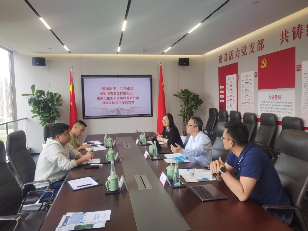 在明康汇生态农业集团有限公司,海亮集团明德院院长助理汪洋、明康汇生态农业集团副总裁潘凤山等热情接待了林辉一行,汪洋详尽地阐述了公司的发展历程,深入剖析了技术研发的进展,以及当前所面临的机遇与挑战。特别是在农业全产业链布局方面,他分享了公司的思考与具体实践。明康汇始终坚持“让每个人享受生鲜的美好”的使命,努力打造中国最大的高性价比生鲜供应链企业。潘凤山肯定了ok138cn太阳集团在学生人才培养方面所具有的独特优势,学生专业基础扎实、学习能力强,希望学校能够继续选送优秀毕业生到公司就业,在园艺品种培育、采后保鲜等方面给予技术支持。