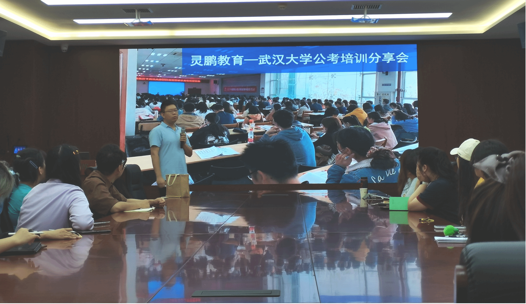 图3:辅导员肖晗展示武汉大学公考培训会现场学生参会情