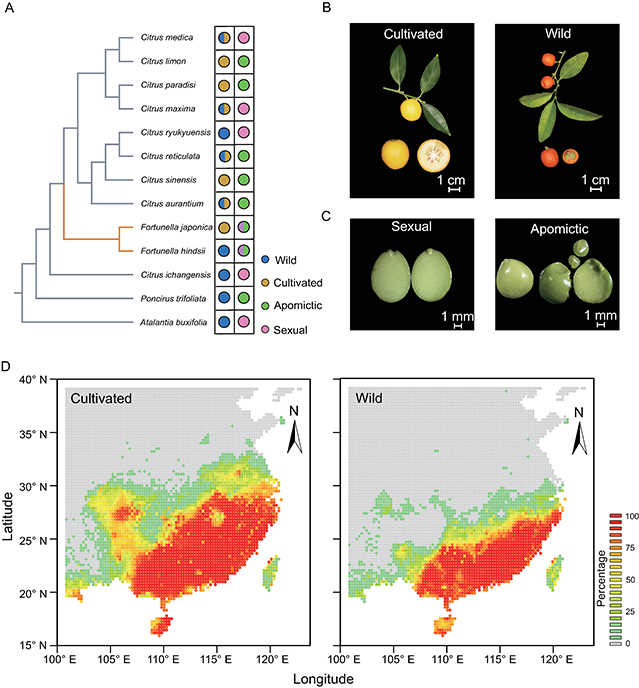 柑橘亚族系统发育、栽培金柑和近缘野生山金柑的不同生殖类型以及地理分布预测