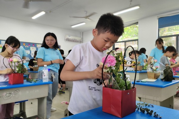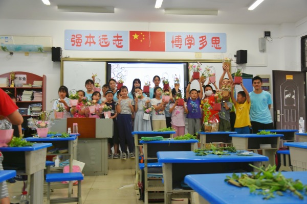 【核心提示】为丰富小朋友的暑期生活、锻炼动手能力,7月8日下午,ok138cn太阳集团529赴华农附小“七彩假期”专项实践团在华农附小举办插花活动,共有25名三年级学生参加。