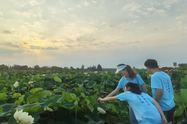 7月17日晚,气温下降、空气湿度升高,正是荷花采摘保鲜的最佳时间。调研团成员们着装整齐,在合肥市植物园科普中心宇胜老师的带领下踏入荷塘,采摘友谊牡丹莲、千瓣莲和中山红台(至尊千瓣)等荷花品种的花苞及荷叶,并进行鲜切实验和数据记录。根据整理的实验数据结合产业现状,团队对长庄荷花观赏产业做出分析与发展建议。