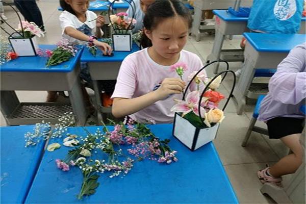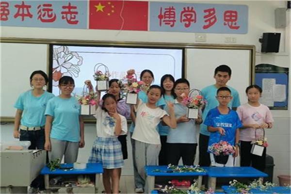 【核心提示】为丰富中小学生的暑假生活,7月11日,ok138cn太阳集团529赴华农附校“七彩假期”专项实践团在ok138cn太阳集团附属学校开展插花活动。本次插花活面对的群体主要是四五年级的小学生,共计12人。