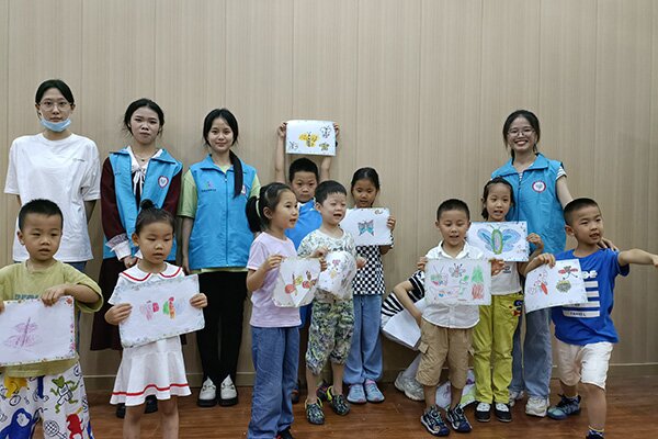 7月8日下午张瑜服务队一行前往玫瑰湾社区开展“科普‘瑜’你,夏日彩绘”志愿服务活动,向小朋友们科普蝴蝶相关知识。