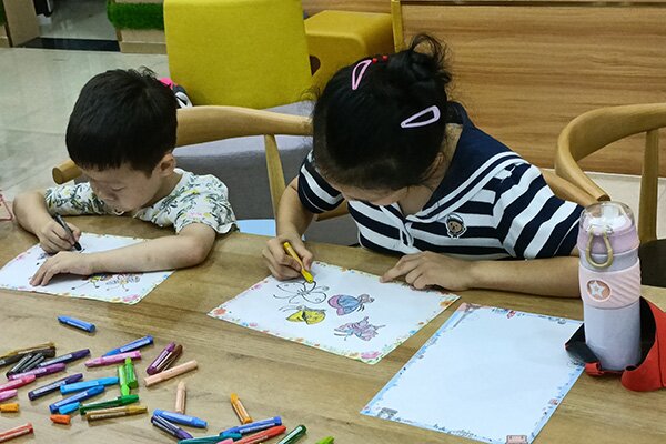 在学习知识的同时张瑜服务队也注重对小朋友动手能力的培养。在园林2104班刘紫琪同学的绘画教学示范后,小朋友们迫不及待地开始了自己的创作。看着他们沉浸其中,摄影队员涂博文与家长们一起用镜头记录下这些美好的瞬间。创作接近尾声时,小朋友们主动和周围的同伴交换画作欣赏,与自己的作品合影留念,活动现场一时热闹非凡。