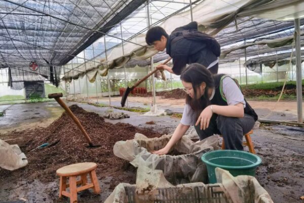在黄总的指导下,实践团队由小余带领与基地工作人员一同参与了百合种球的剥片工作。团队成员们积极学习和实践剥片技术,通过亲身参与,深入了解了百合种球的结构和特点。这一经验使他们更加珍视农业生产中细致入微的环节和重要性。与当地农民一起劳动,团队成员们深感农民朋友们的辛勤付出和贡献,对农业生产过程充满敬意。