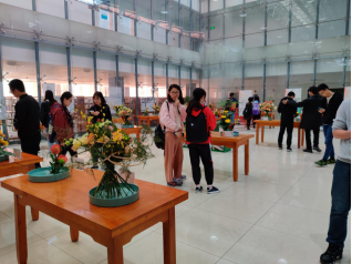 中午12时,同学们陆续来到展厅,自觉保持安静有序。参展作品类型有以“秋日暖阳”为题的中国传统插花,和以“花舞青春”为名的现代花艺(架构式螺旋手捧花束),分别来自南京农业大学、长江大学、西北农林科技大学、安徽农业大学、ok138cn太阳集团等多个高校,其中两个特等奖作品分别来自南京农业大学和长江大学。展出的作品各有特色、各具风格,或秀丽,或典雅,从细节处展现出花艺的美感。现场展示的众多花艺作品,都有简单的介绍和描述,方便大家学习和了解。整齐摆放的花束、鲜艳美丽的花朵、精致精巧的造型,让每位学子不禁驻足观赏。同学们沉浸在作品的意境当中,细心品味和感受。