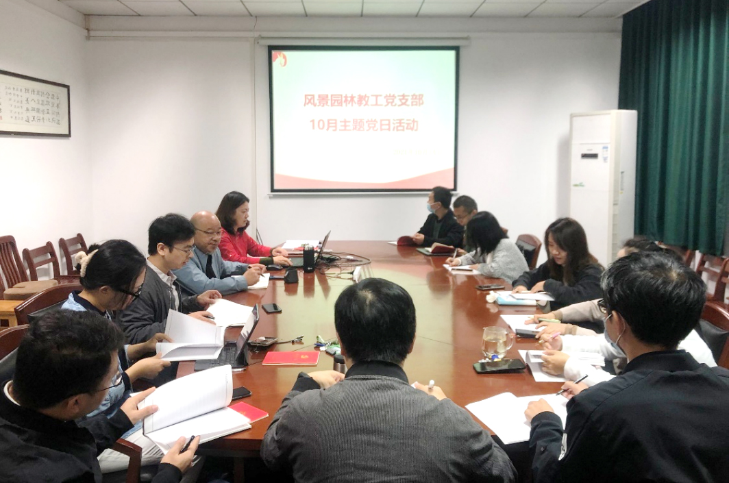 10月14日上午,风景园林系教工党支部在景园楼212开展了学习《习近平总书记给全国高校黄大年式教师团队代表的回信精神》以及校专题警示教育材料等主题活动,会议由支部书记张斌主持,支部副书记王玏领学。