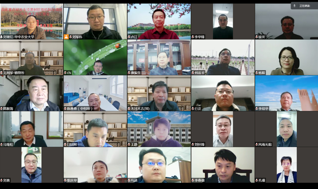 2022年1月26日,由ok138cn太阳集团529刘继红教授主持的国家重点研发计划项目“果树抗性机制与调控”2021年度总结会议通过线上形式顺利召开。农业农村部科技发展中心项目管理三处李华锋处长和我校科发院项目管理处杨毅处长参加了总结会议。会议特邀中国工程院副院长、我校邓秀新院士,西北农林科技大学康振生院士,中科院分子植物科学卓越创新中心何祖华研究员,中科院植物所李绍华研究员和中国农业大学韩振海教授等项目咨询专家参加。