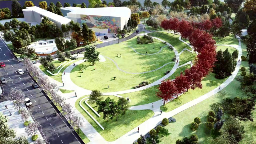 “这是青年人的主场,它是一种美的享受,也是一个展示自我的舞台。”设计团队张斌教授认为,轮滑是一项深受青年学子喜爱的阳光、时尚、活力的体育运动,也是集体育竞技和休闲娱乐为一体的综合性运动项目,室外轮滑场的出现,可以让它作为一个青年学子交流与表现的平台。“无论技术,不畏跌倒,穿着轮滑鞋飞驰的人们,内心永远年轻,永远活力,永远无限激情。”