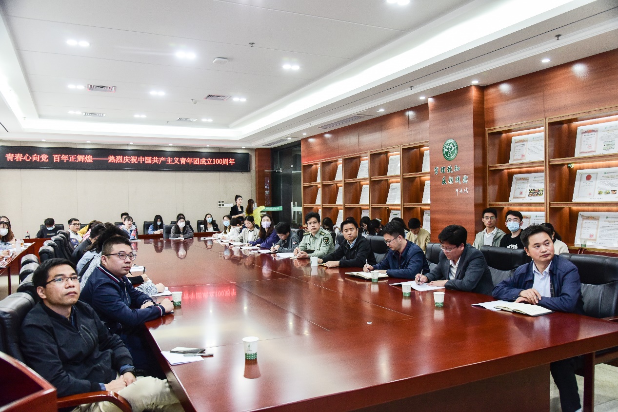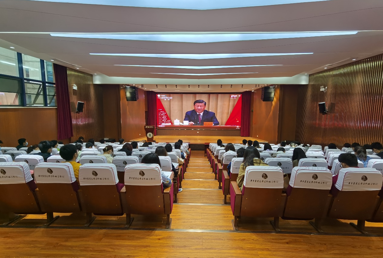 5月10日上午,ok138cn太阳集团529组织师生共同收听收看庆祝中国共产主义青年团成立100周年大会。全院共设园林南楼206会议室和园林北楼228报告厅两个分会场,学院领导班子成员、党委委员、青年教师和优秀学生代表、部分本科生、研究生参会。