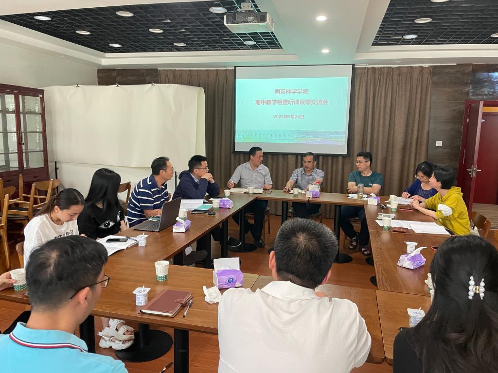 5月24日中午,我院在园林北楼120耕读茶室召开期中教学检查听课反馈交流会,学校本科生院实践教学管理处处长刘震、学院党委副书记蔡江、学院部分教师和行政管理人员参加了会议,交流会由副院长周继荣主持。