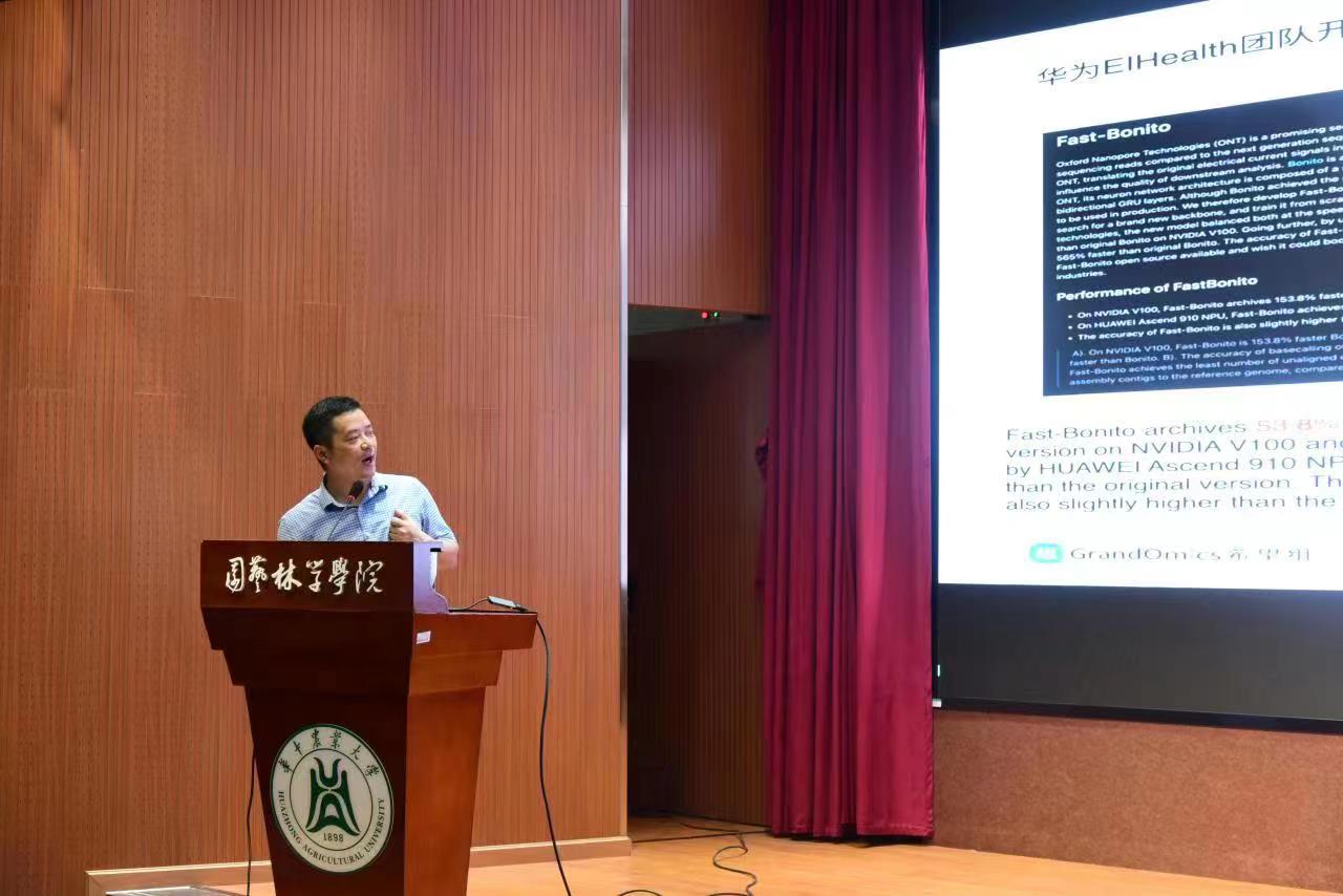 6月14日下午,我校“园艺讲堂”于园林北楼228报告厅举办2022年第5期学术报告活动,应ok138cn太阳集团529园林系宁国贵教授邀请,武汉未来组生物科技有限公司总经理汪德鹏做客讲堂,并带来“T2T泛基因组育种”的报告,同园林学院师生共同交流和讨论。