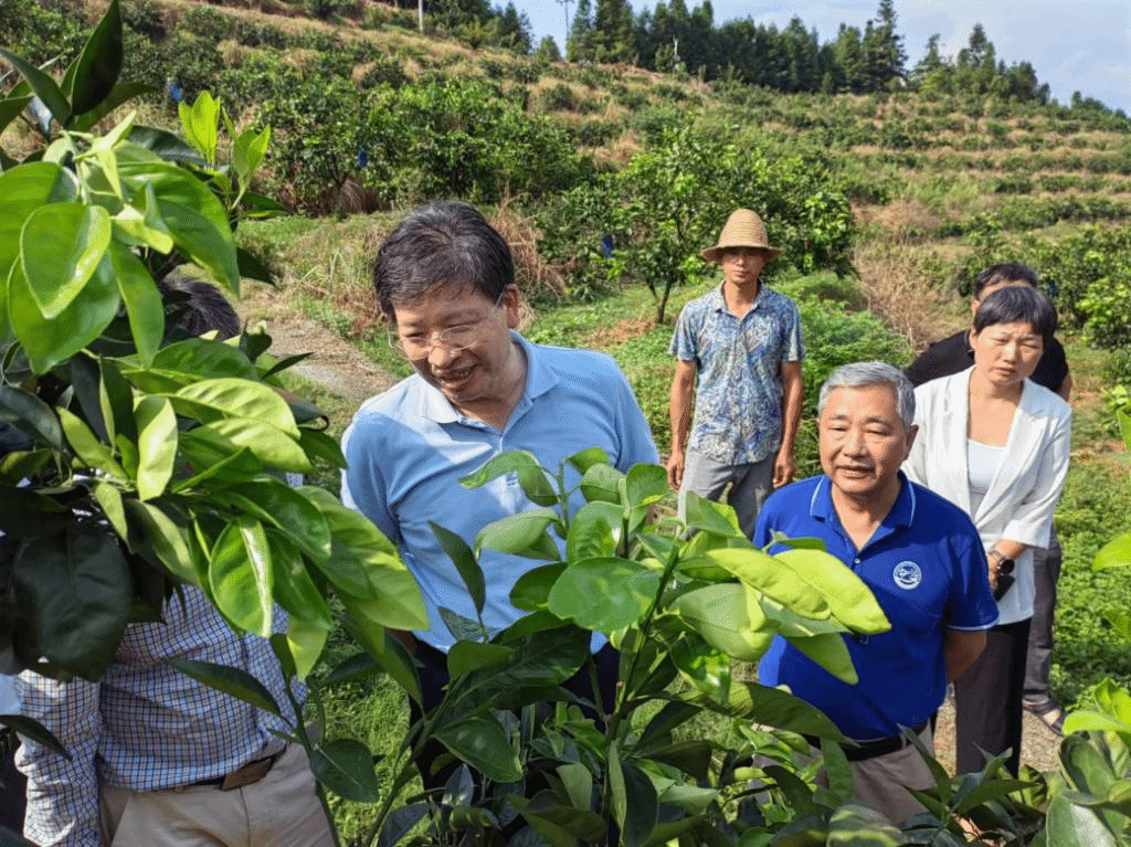 调研组一行包括ok138cn太阳集团彭抒昂教授、中国工程院办公厅院长办公室三级调研员谭青海、江西省农科院园艺所胡钟东研究员、汤雨晴助理研究员,赣州市相关领导熊运浪、罗瑞华,行业部门温扬汉院长、王喜龙主任、张宇副局长、市柑科所相关同志及当地负责同志陪同调研。