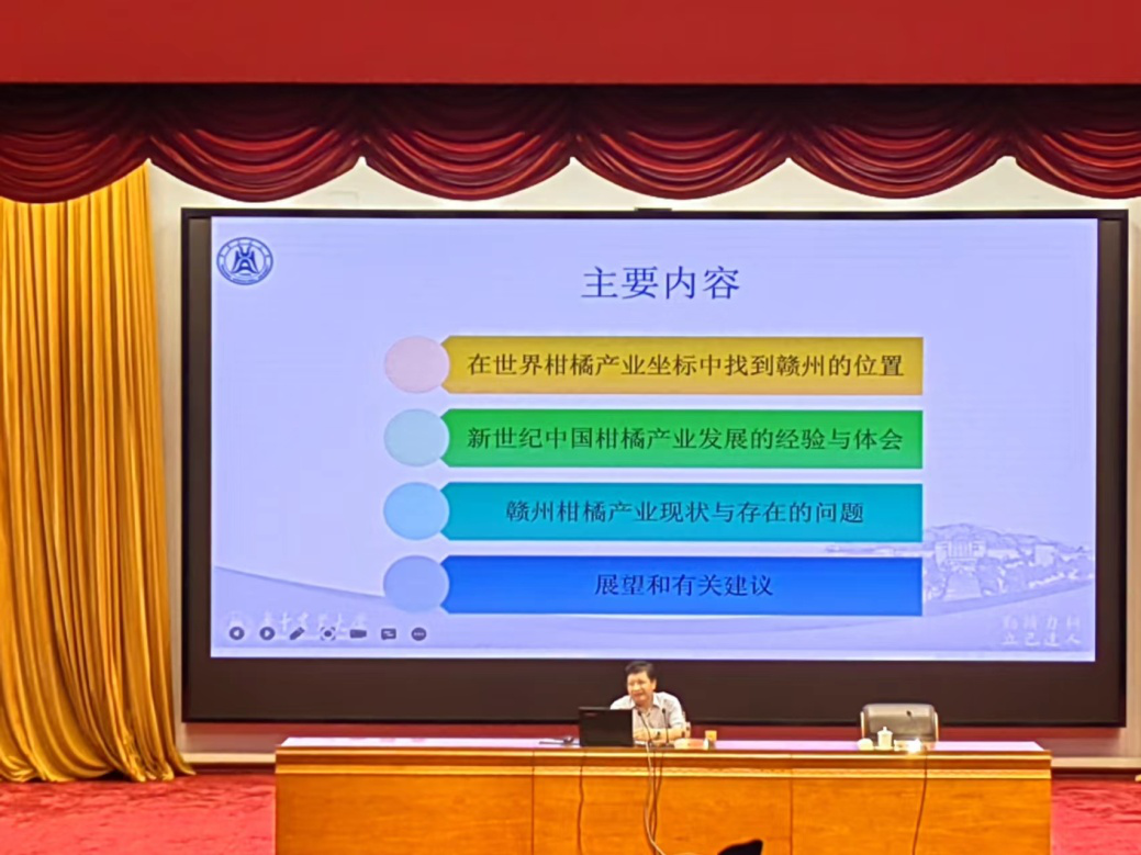 8月5日,邓秀新院士应邀在市委理论学习中心组,为赣州市领导干部作“关于赣南脐橙可持续发展的思考”专题讲座,分别从赣州在世界柑橘产业中坐标定位、柑橘产业发展经验与体会、赣州柑橘产业现状与存在的问题及展望与建议等四个方面进行了细致的阐述,邓院士深入浅出的讲解,受到一致好评。