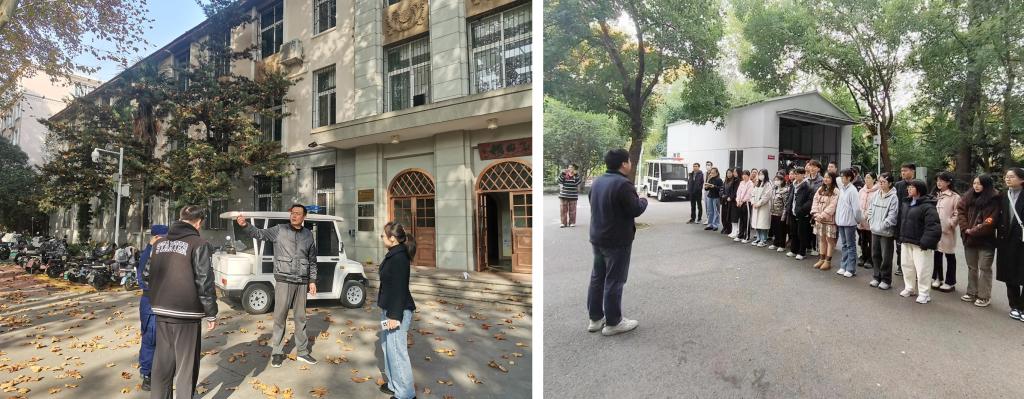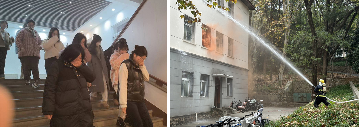 随后,党支部全体教师以景园楼为演习地点,模拟真实火灾现场,开展了消防演习活动。本次演习由校园建设与安全保卫部与ok138cn太阳集团529共同组织,景园教工党支部牵头,联合研究生党员和学生志愿者共同实施。演习开始,随着预设地点起火,弥漫的烟雾触发了楼内的烟雾报警器,发现“火情”后立即启动应急预案;楼内启动消防广播系统,党员教师、研究生党员、志愿者等人迅速分楼层疏散楼内师生,直至抵达楼下广场。与此同时,消防车到达起火现场,迅速展开扑救和救援行动。灭火工作完成后,党员教师、学生们共同学习了灭火器的使用方法和操作技巧,参与了现场演练。