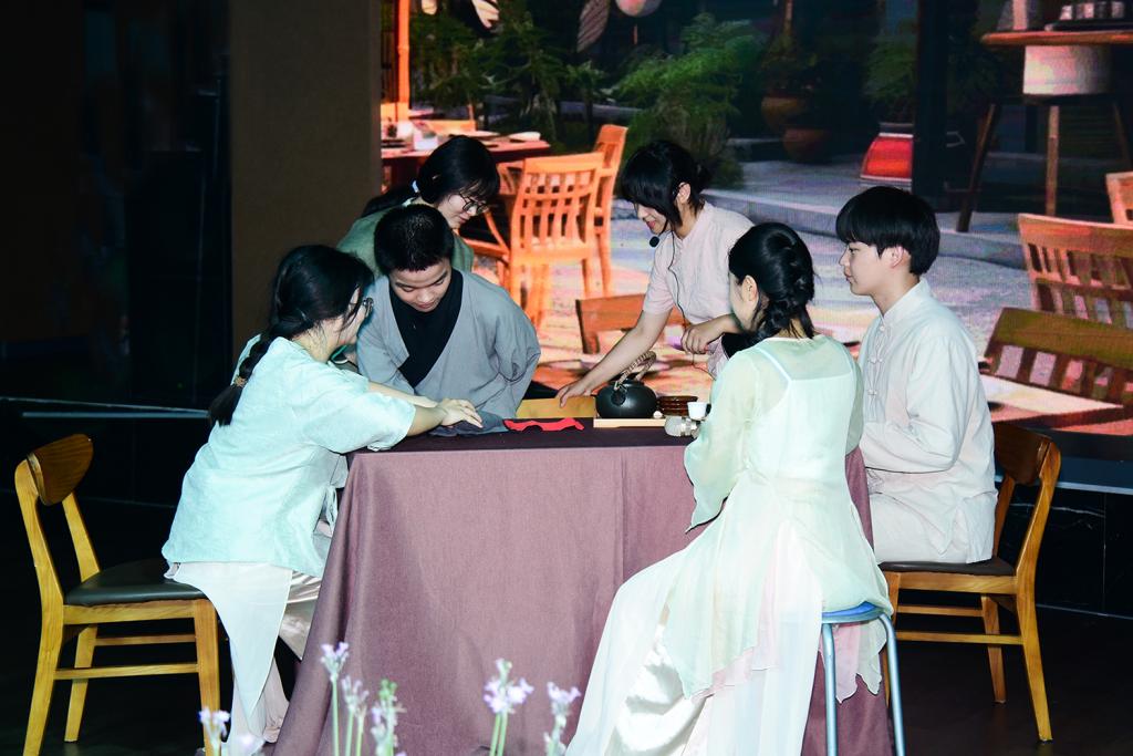 情景剧《小察创业记》讲述了时代浪潮下新茶饮行业创业的艰辛,大学生小察穿越回民国时期,以史为鉴,重拾信心,找到破局之路。茶艺表演《一盏茶,一片民族情》以傣族竹筒茶、白族三道茶、土家族擂茶三种少数民族特色茶艺为切入点,介绍其各自的民族文化,表现了民族团结的精神。《诗词大会》则以比赛中的种种乱象隐喻茶叶市场中的腐败现象,讽刺某些“茶专家”的金玉其外,败絮其中。