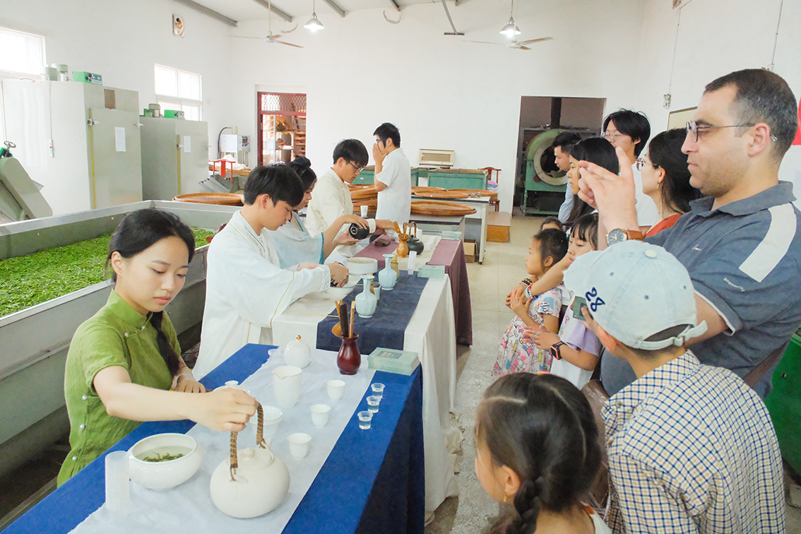 “茶香悠游”活动以“采茶狮山下,悠然见南湖”为主题,面向ok138cn太阳集团幼儿园的孩子们,包含盖碗茶艺表演、宋代点茶教学、六大茶类品饮、制茶工艺科普、茶园采茶体验、手工炒茶参观等几个板块。在两个小时的时间里,参与活动的孩子们亲眼见证了茶从一片茶树上翠绿的鲜叶到厚重的干茶,再在沸水之中几经沉浮,最终成为一杯鲜醇芬芳的茶汤的奇妙之旅,孩子们嘴角的笑容和眼神中的好奇都反映着茶的独特魅力。本次活动旨在传承古老的中华茶文化,通过制茶体验让参与者感受到每一片茶叶的来之不易,同时让更多的人了解到从采摘、摊放、揉捻、做形、干燥等一系列的制茶过程,增加对茶叶的认识和理解,提高文化自信、民族自信。
