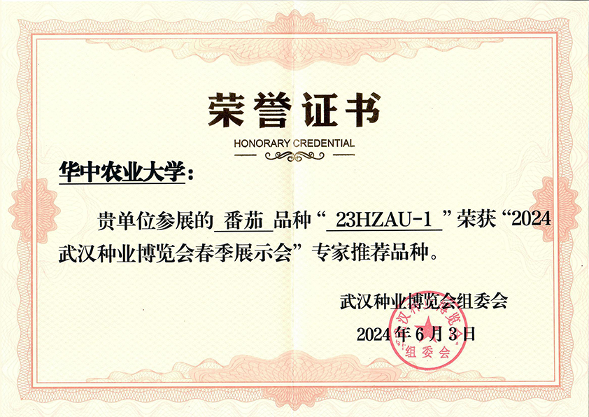 2024年6月3日,备受瞩目的2024武汉种业博览会在武汉市农科院北部园区盛大开幕。本次博览会以“培育耕耘之‘芯’,发展新质生产力”为主题,吸引了全国众多农业科研单位、种业企业和专家学者的积极参与。我院番茄团队选育的樱桃番茄新品种“23HZAU-1(华樱蜜语)”在博览会上脱颖而出,荣膺专家推荐品种,展现了我院番茄团队在农业科技创新方面的新进展。