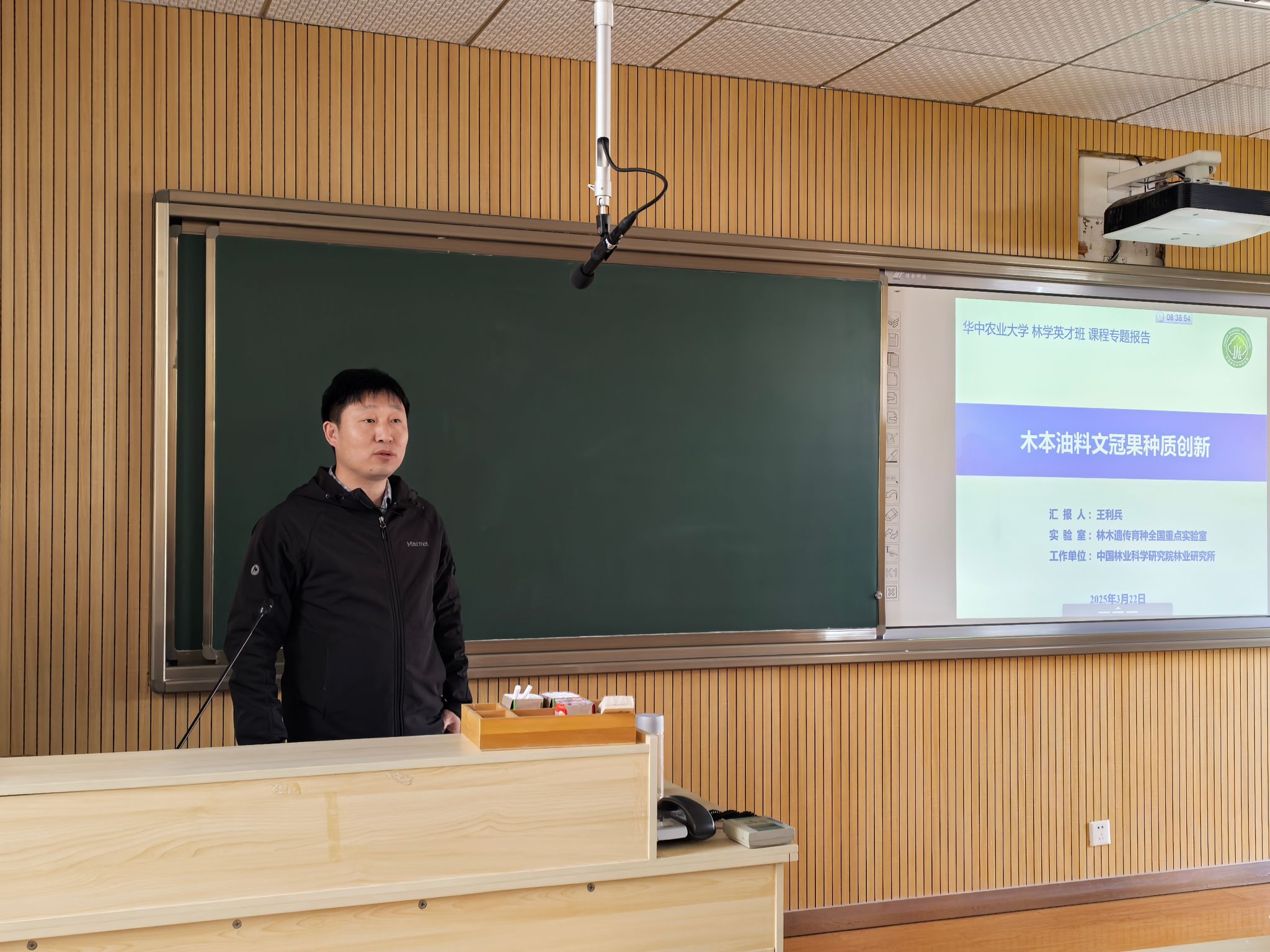 在22日上午的报告中,王利兵研究员做了题为“木本油料文冠果种质资源创新”的报告。他结合自己科研成长经历,围绕“木本粮油发展的重要意义、文冠果多功能价值机器开发潜力、产业发展关键科技需求、文冠果种质资源创新研究、未来研究计划”等五个方面进行了深入浅出地介绍,为林学英才班学员系统展示了国家和行业需求驱动下林业科学研究的创新范式。