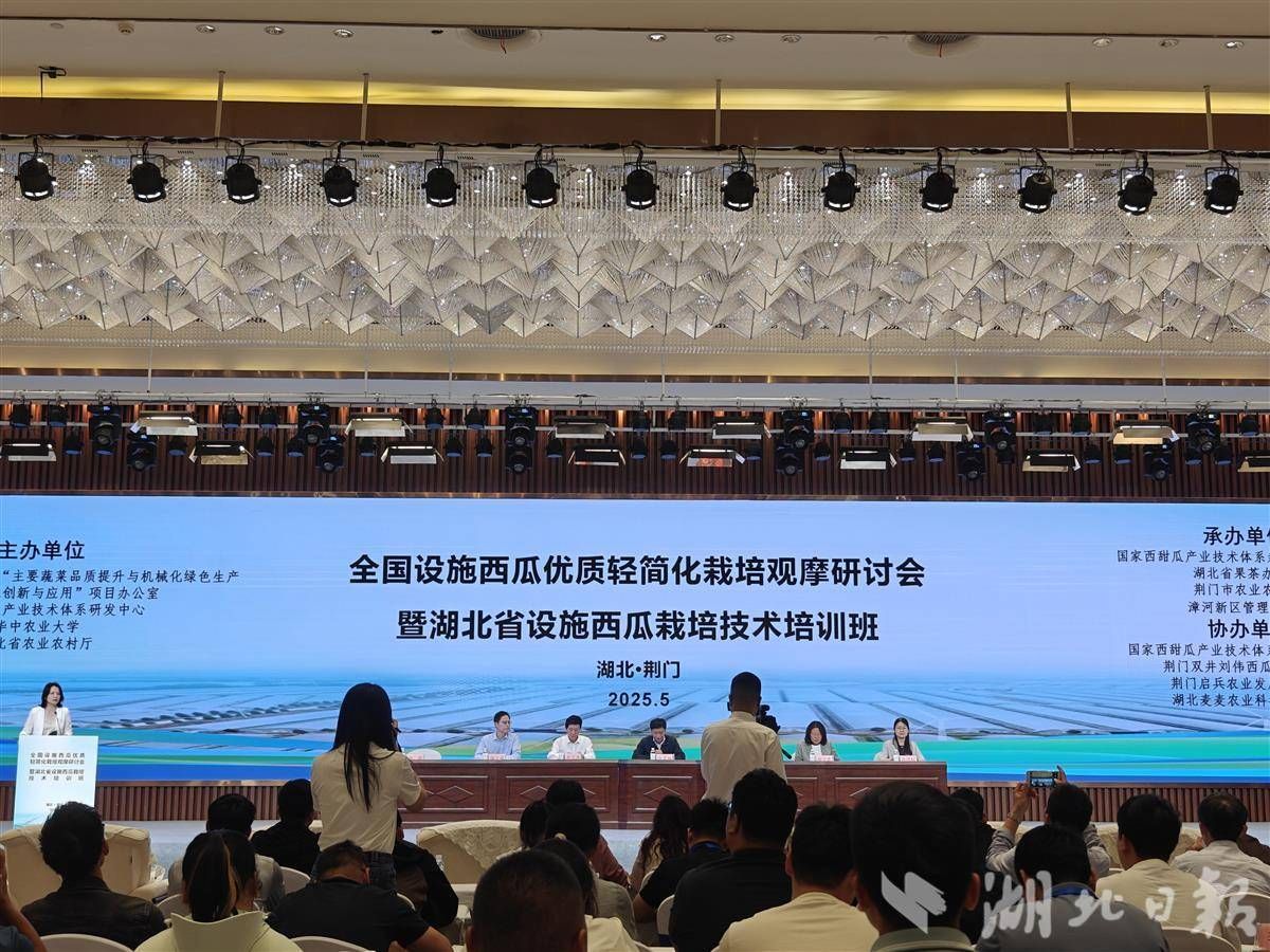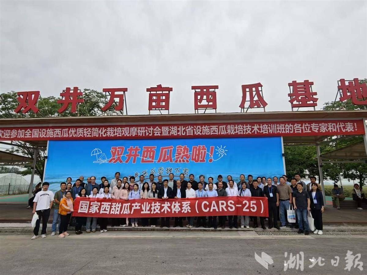 “全国设施西瓜优质轻简化栽培观摩研讨会暨湖北省设施西瓜栽培技术培训班”5月9日-11日在荆门举行。本次会议由“十四五”国家重点研发计划“主要蔬菜品质提升与机械化绿色生产技术创新与应用”项目办公室、国家西甜瓜产业技术体系研发中心、ok138cn太阳集团、湖北省农业农村厅主办,国家西甜瓜产业技术体系栽培与土肥研究室、湖北省果茶办公室、荆门市农业农村局、漳河新区管理委员会等单位承办,国家西甜瓜产业技术体系武汉综合试验站、荆门掇刀双井刘伟西瓜专业合作社、荆门启兵农业发展有限公司、湖北麦麦农业科技有限公司等单位协办。