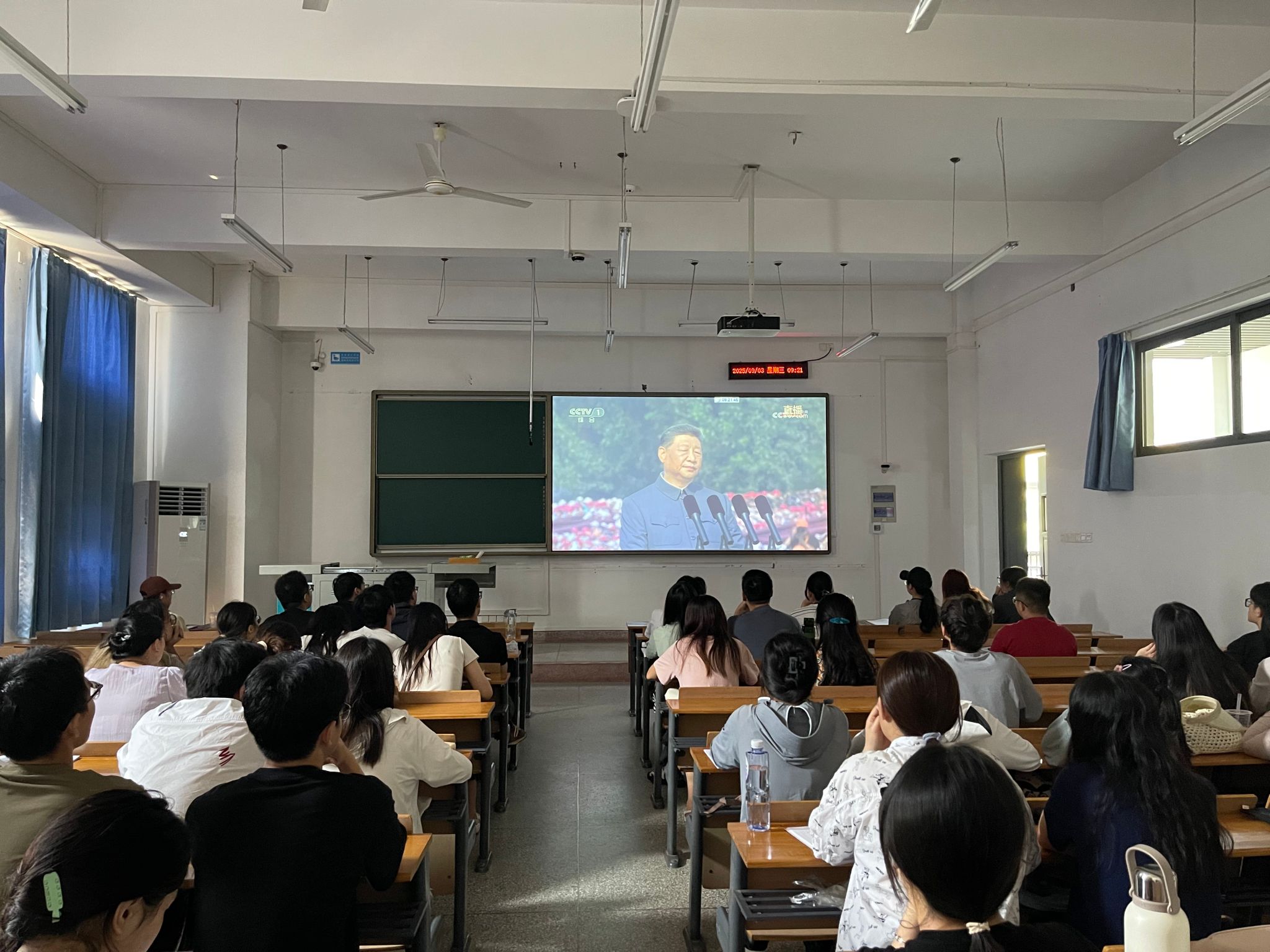 9月3日上午,红旗飘扬,军威雄壮。纪念中国人民抗日战争暨世界反法西斯战争胜利80周年阅兵式在北京天安门广场举行。我院组织师生集中收看阅兵式直播,共同上了一堂生动而深刻的爱国主义教育课。