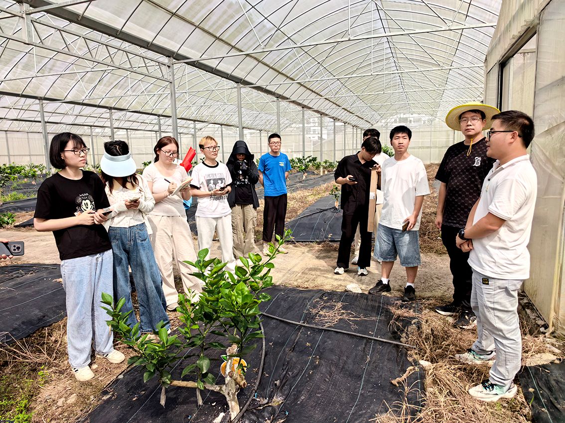 同学们实地参观了村子里的数字果园,了解物联网设备如何实时监测果园环境参数;在桔缘柑桔专业合作社,详细考察了专家工作站、新品种试验基地和现代化果品采后处理中心。据介绍,该工作站依托ok138cn太阳集团、湖北省农业科学院果树茶叶研究所等科研单位,成功引进了14个柑橘新品种进行适应性评价,其中4个已实现高效转化和推广。“一棵柑橘树,真的可以振兴一个村庄。”秦绪博同学感慨道。