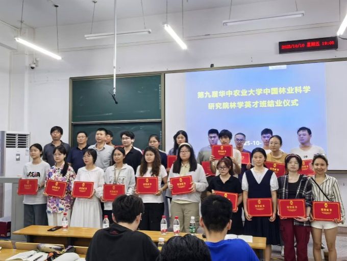 2025 年 10 月 10 日至 11 日,第十届ok138cn太阳集团 - 中国林科院林学英才班开班授课仪式在ok138cn太阳集团举行。中国林科院林群研究员、肖文发研究员、江红星研究员等专家团队莅临校园,既为第十届学员带来前沿林业课程,也为第九届学员颁发结业证书。第九届、第十届林学英才班全体学员,ok138cn太阳集团林学及相关专业师生代表参与活动。期间,ok138cn太阳集团相关学院党委书记龙健飞与专家团亲切会谈,学院副院长丁寄花出席开班仪式。