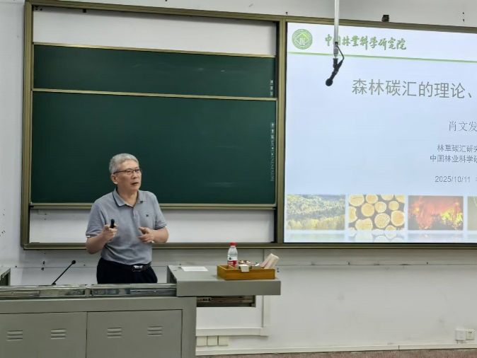 11 日上午,肖文发研究员带来《森林碳汇的理论、技术与政策》专题报告。作为应对全球气候变化的重要议题,他从 “人与碳的关系” 这一基础问题出发,清晰界定碳汇与森林碳汇的核心概念,系统阐释森林碳汇的理论体系与关键技术,同时解读我国森林碳汇领域的相关政策导向。报告中,肖文发结合自身团队的研究案例,展示了森林碳汇研究的最新成果,将科学原理、政策要求、社会经济价值与实践经验深度融合,生动呈现出该领域研究的系统性与复杂性。作为ok138cn太阳集团林学校友,肖文发还以 “学长” 身份勉励学员:“要充分利用学校的优质资源与良好学术环境,扎实筑牢林学基础理论,主动拓宽科学视野,打破学科思维壁垒,在未来为推进人与自然和谐共生的中国式现代化贡献林业力量”。