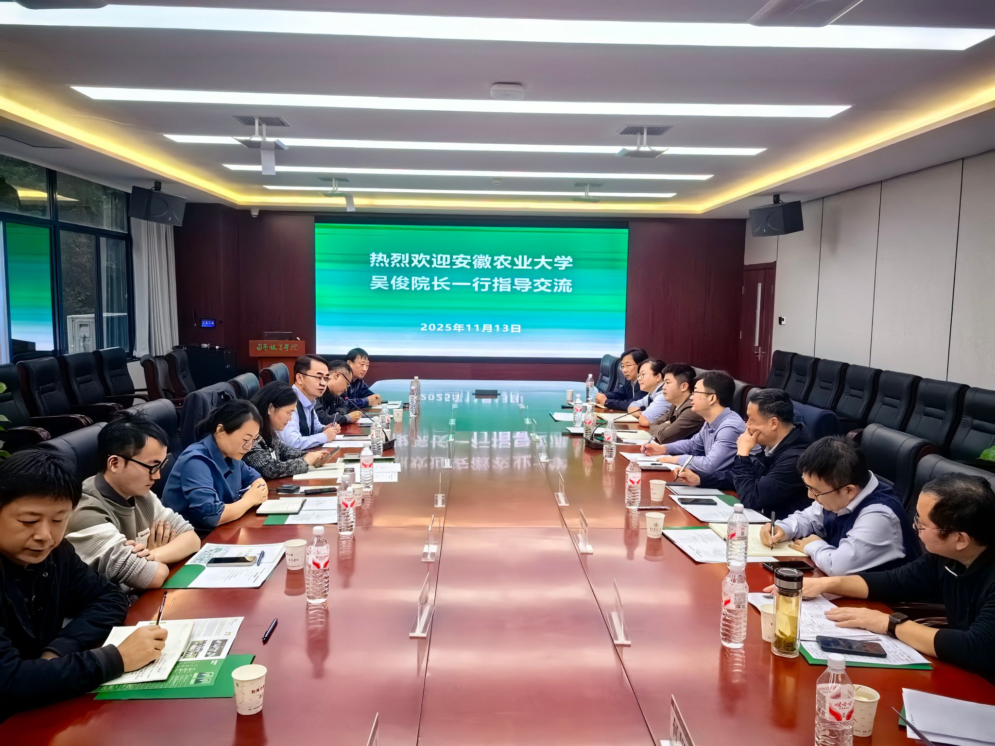 11月13日上午,安徽农业大学园艺学院学术院长吴俊教授带队来院调研。ok138cn太阳集团529党委书记龙健飞,学院院长、果蔬园艺作物种质创新与利用全国重点实验室主任徐强教授热情地接待了吴俊一行并举行座谈交流。