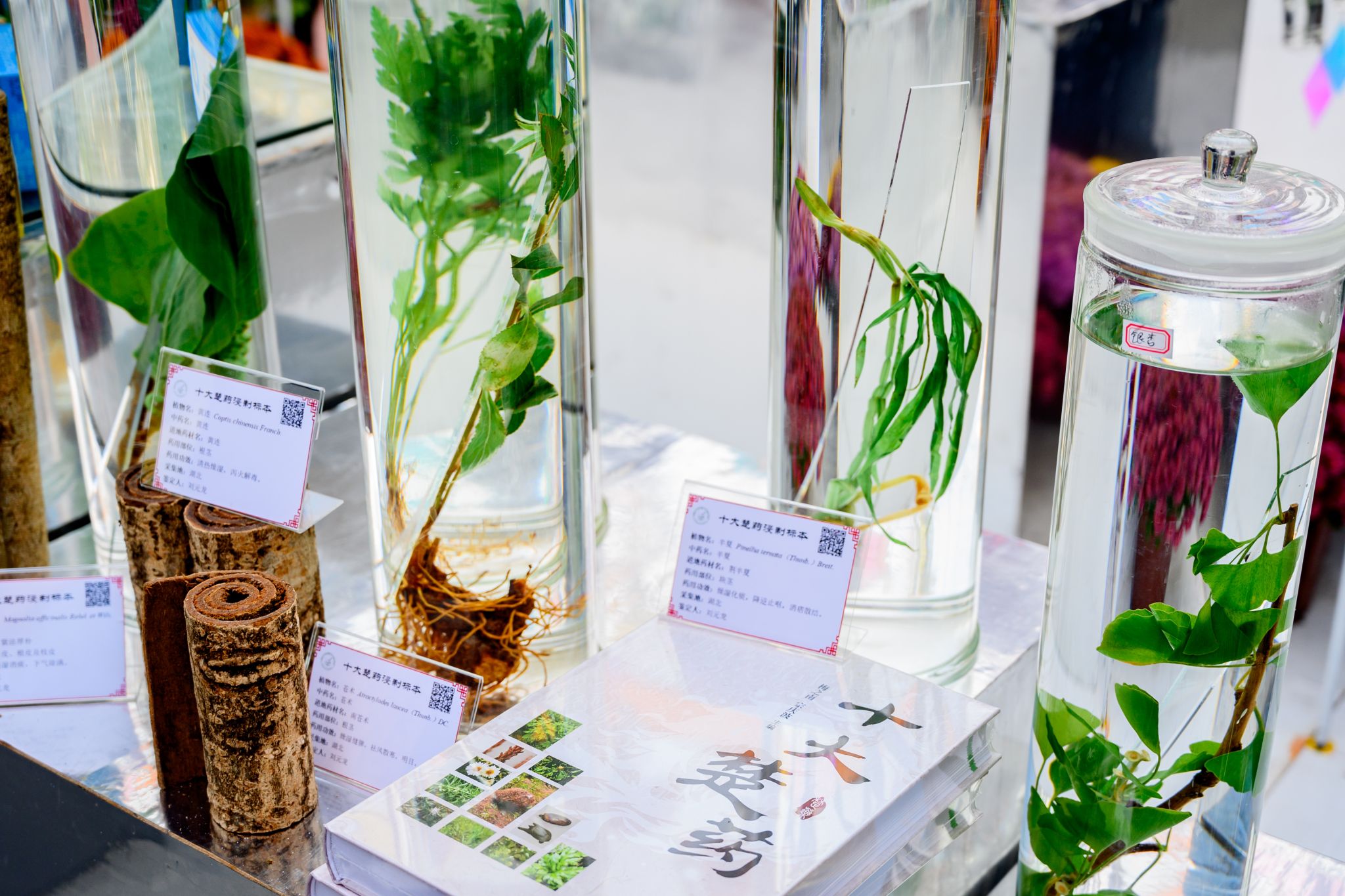 楚药展区陈列的中草药标本(李亚珊 摄)