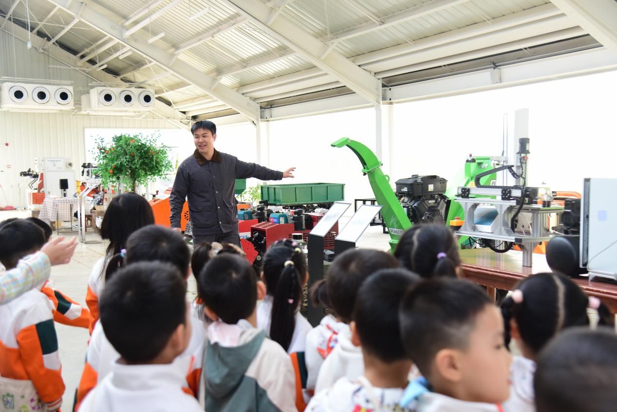 活动伊始,小朋友们排着整齐的小队伍,好奇地走进现代园艺产业中心。刚看到排列整齐的园艺机械,孩子们就忍不住踮起脚尖、睁大眼睛打量。智慧园艺实践教学基地宋竹平老师和邹运乾老师生动有趣地为小朋友们讲解了各种机械的功能和使用方式,小朋友们听得津津有味,也积极与老师们互动。