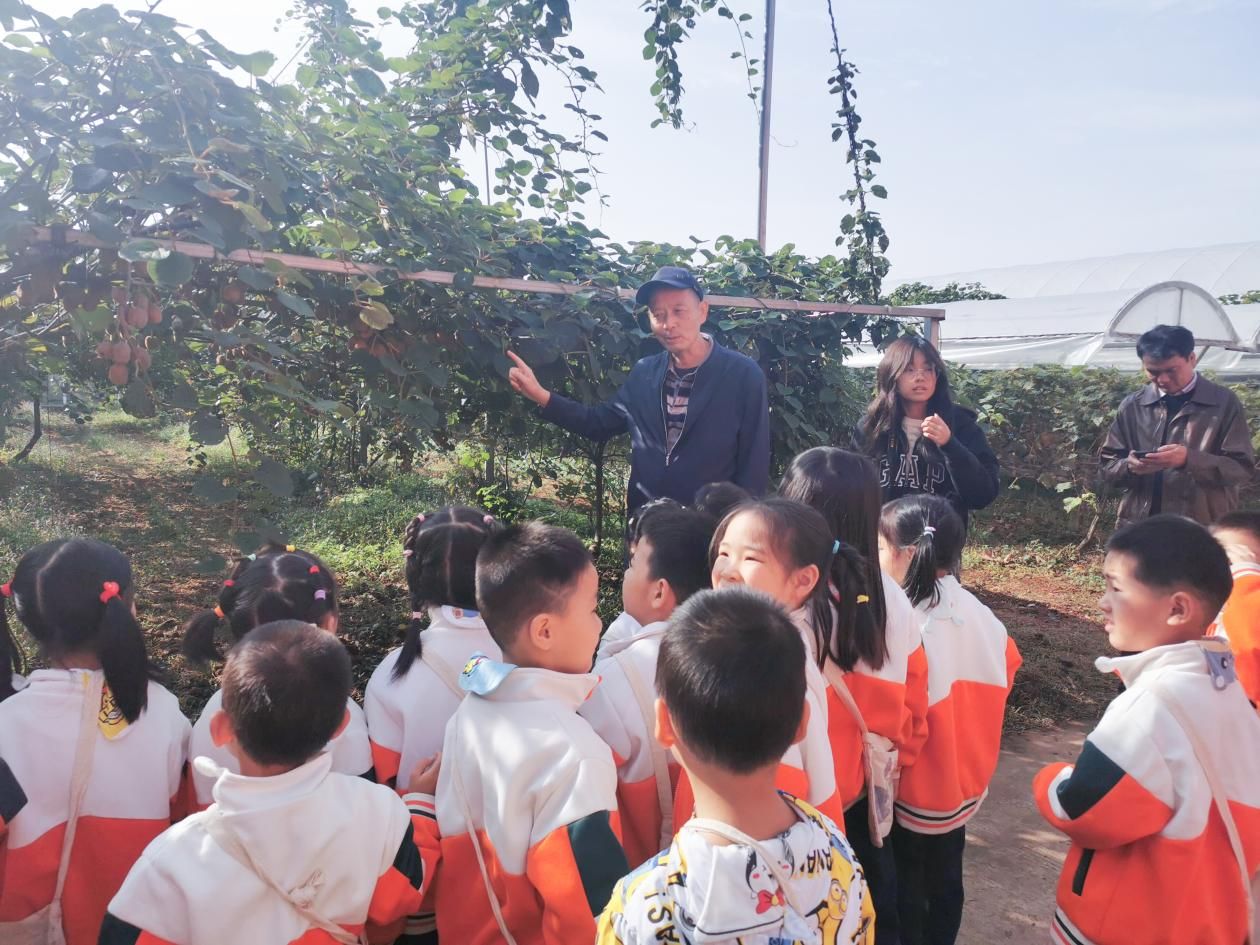 随后,大家又兴高采烈地来到果树资源圃,郭大勇老师早已站在挂满果实的柑橘树旁等候。他化身科普向导,为孩子们带来生动实用的讲解。郭老师结合基地种植的柑橘、猕猴桃,用通俗易懂的语言介绍两种水果的生长习性、结果特点,以及如何采摘成熟果实的小技巧。孩子们围在老师身边,认真聆听、积极提问,好奇地触摸果实、观察叶片,在互动交流中初步了解水果种植的基本知识,为后续采摘做好准备。郭老师耐心地一一解答,还现场演示了采摘小技巧,孩子们认真模仿着动作,在一问一答、一看一摸中,悄悄把水果种植的知识记在了心里,为接下来的采摘做好了充分准备。