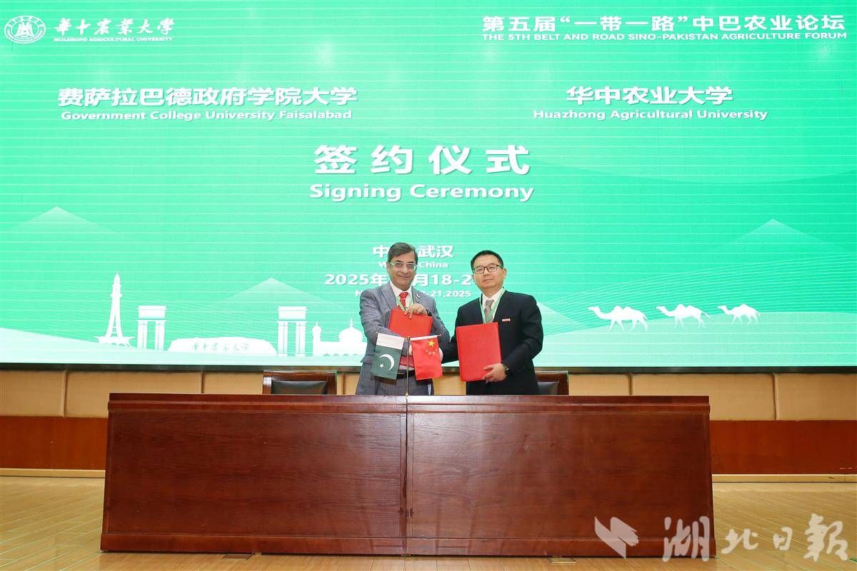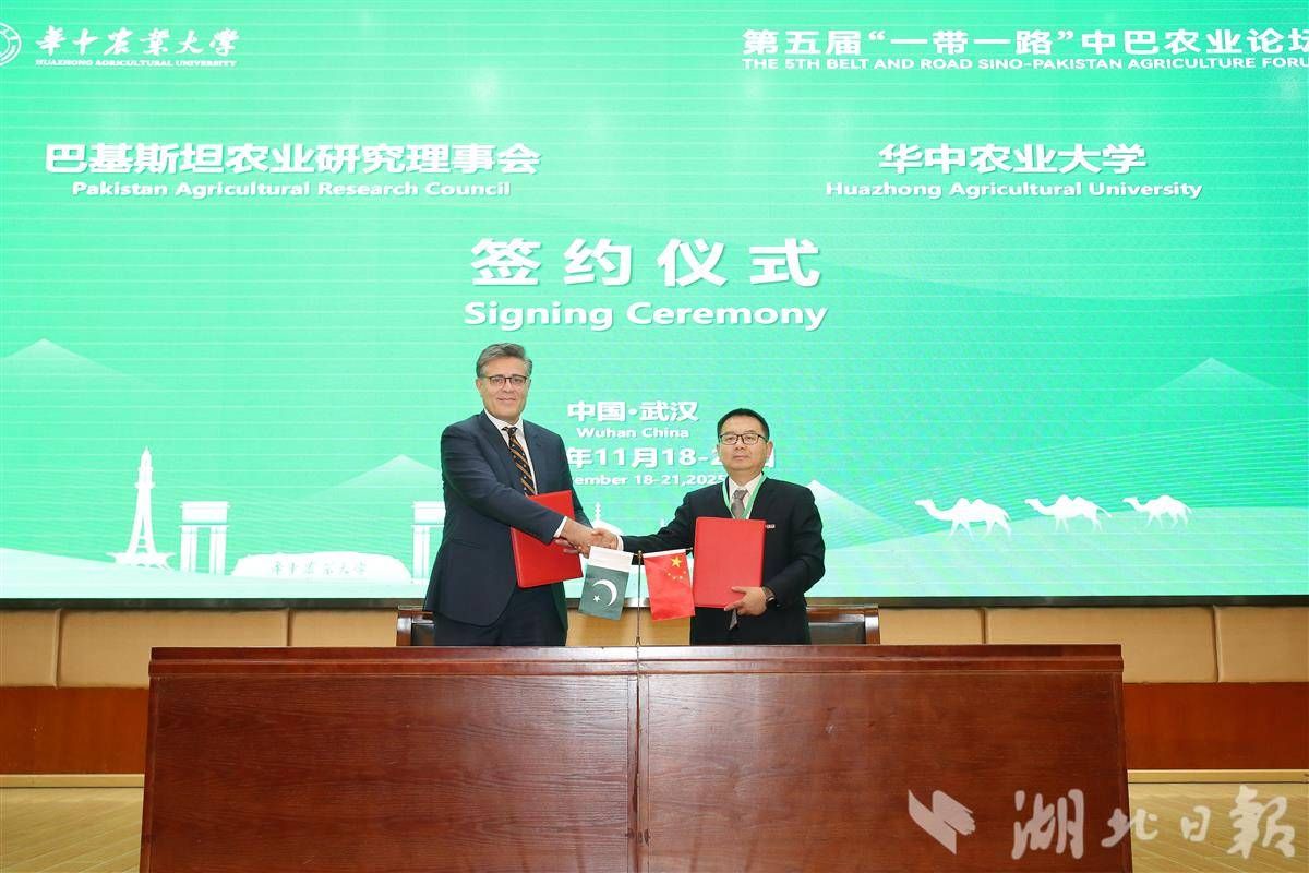 开幕式上,华中农大分别与巴基斯坦农业研究理事会、费萨拉巴德政府学院大学签署合作协议,“武汉市(中国-巴基斯坦)园艺作物种质创新与利用‘一带一路’联合实验室”揭牌。