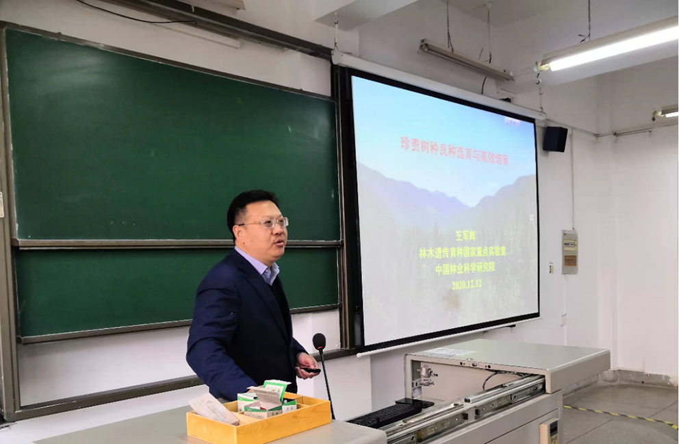 2020年12月11~12日,中国林科院林业研究所王军辉研究员和森环森保所黄志霖研究员来校为ok138cn太阳集团中国林科院林学英才班暨林学科研案例课学员作报告,中国林科院研究生院曾凡勇副主任参加。我院副院长周继荣、王鹏程会见了相关专家,周继荣介绍了林学英才班建设的基本情况,王鹏程主持了报告会。林学及相关专业师生100余人听取了报告。