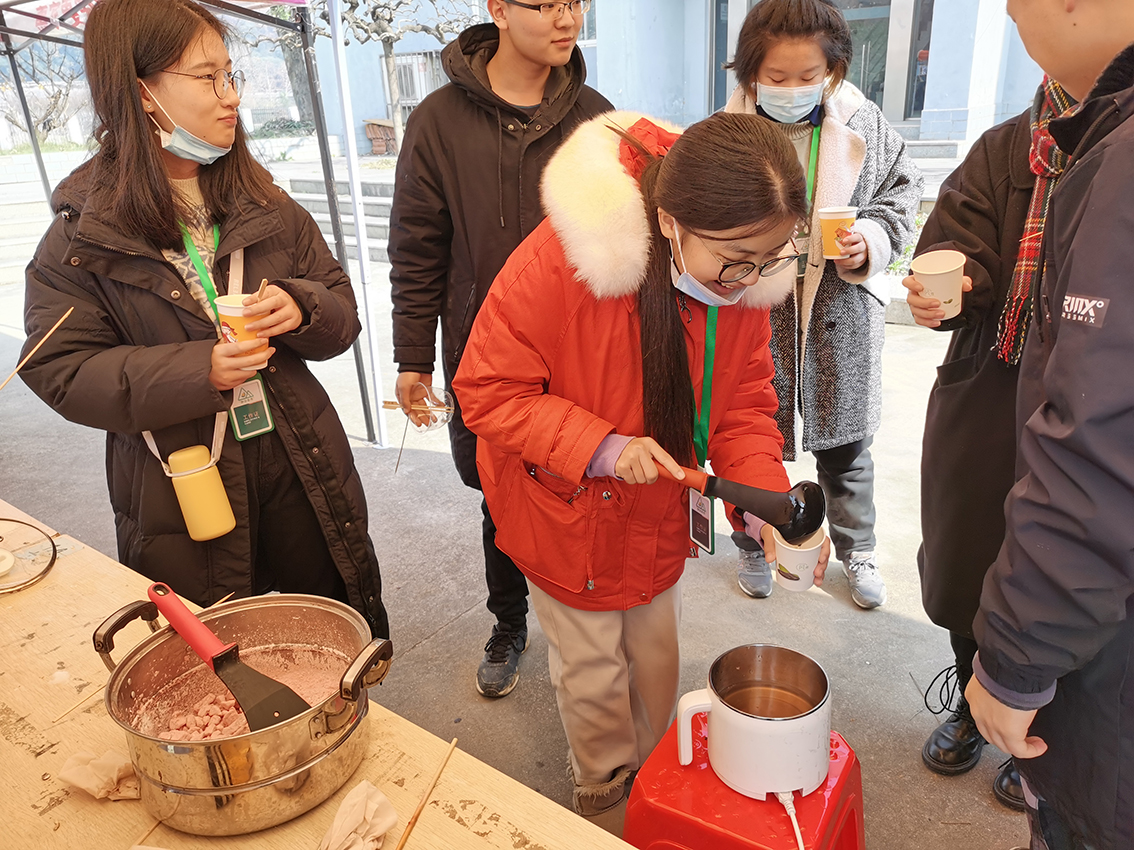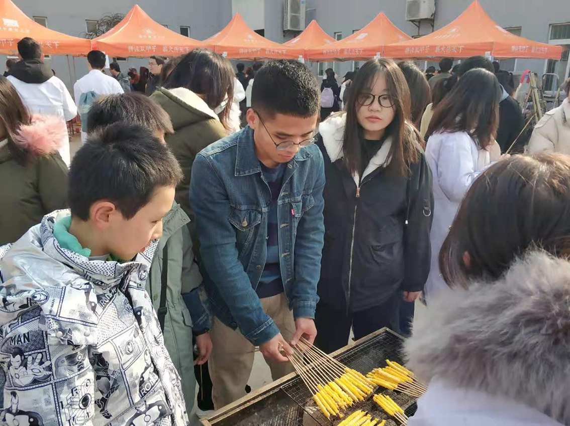 空气中弥漫着各式食物的香气,圣女果、草莓、橘子裹上锅中的甘蔗糖浆,静置片刻便是一串串成型的糖葫芦;茄子、黄瓜片、羊肉串、金针菇刷油烧烤,撒上孜然粒、辣椒粉,新鲜出炉即一抢而空;朴素原味的炕土豆配上简单蘸料,摊位前人头攒动。在等待熬糖的间隙,活动负责人园艺1802班周奕轩还向大家介绍糖葫芦所用黄色甘蔗方糖的制作流程。“大家的热情都超出了我的意料,有的小朋友为了吃到创意美食等待一个多小时,我也期待着狮山欢乐节当晚我们再次相聚。”周奕轩说。