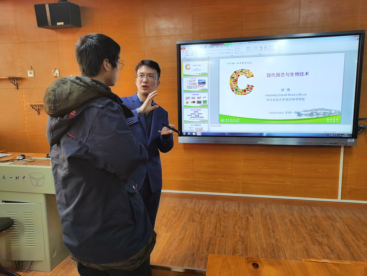 12月30日下午,学院果树系教授徐强老师、风景园林系丁静蕾老师应邀来到华师一附中,开展“教授进中学”活动。