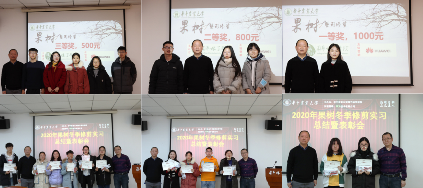 12月28日上午,校内花果山实习基地开展了由我院主办、华为技术有限公司友情赞助的2020果树冬季整形修剪技能大赛,2018级园艺专业(果树方向)42名本科生和、校本科教学巡视员蔡礼鸿教授、张青林副教授、刘军伟副研究员、郭大勇高级工程师和胡其强技术员参加了本次竞赛活动。学院党委书记张宏荣、党委副书记蔡江、刘佳主任、果树系主任刘继红教授亲临竞赛现场观摩,并为同学们加油鼓劲。