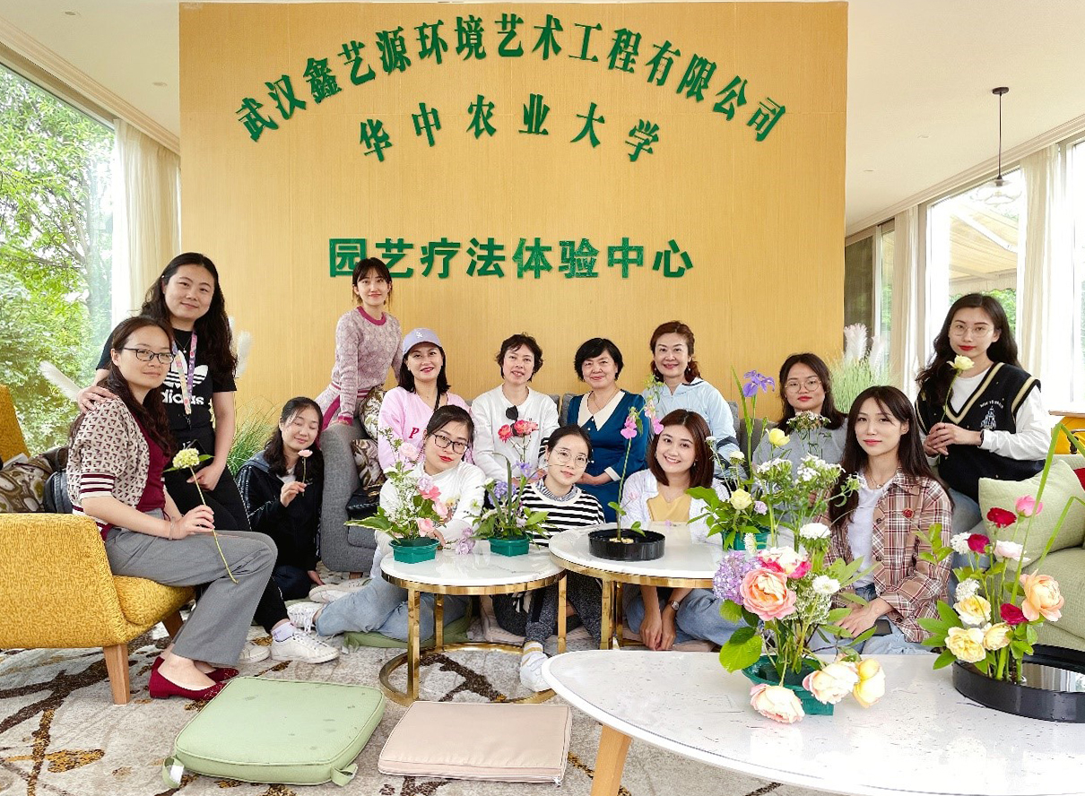 2021年5月6日,我院王彩云教授应华中师大学工部和鑫艺源园林工程公司万红莉董事长之约,在江夏ok138cn太阳集团园艺疗法体验中心与华中师范大学30多名本科毕业班班主任和学校心理健康中心辅导老师探讨了园艺体验在大学生心理健康和师生减压中的应用与研究法。