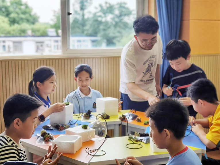5月28日下午,ok138cn太阳集团5292020级园林植物与观赏园艺研究生党员等一行赴华农附属小学为五年级2班的50位小朋友讲授微景观制作活动。