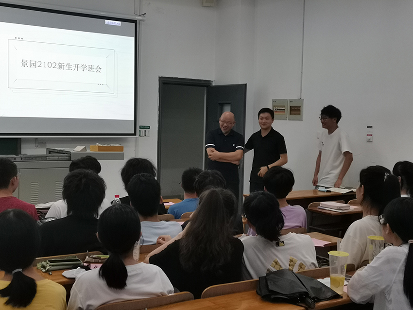 2021年9月16日,副校长杨少波,学院党委书记张宏荣、院长程运江、党委副书记蔡江、副院长张斌、周继荣、院长助理张俊红、风景园林专业导师邵继中等老师,先后深入学生寝室,走访学生班会现场,为学院2021级本研新生送上新学期的问候。